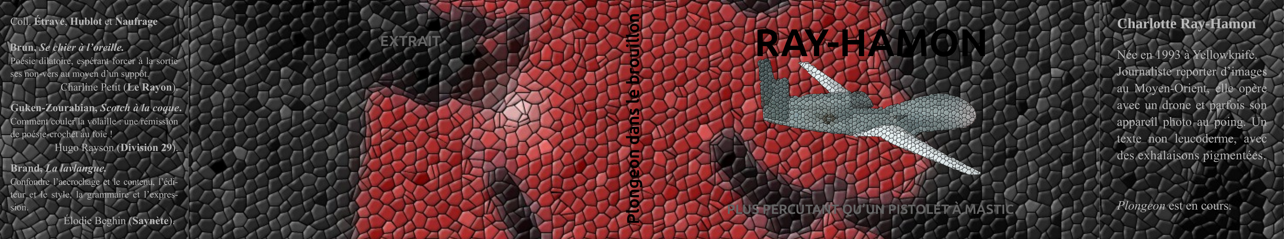 Albert Hoyat-Vanoli 🔍 Pour ouvrir le document intitulé « Citation par anticipation (CA) », cliquer page 14 sur « Musée de Poésie en pied, le verbe cannibale avance à petites enjambées », et, pour le document intitulé « Les ignorants du signe (IS) », page 26 sur : « Le petit cheval à bascule pour mes quatre ans ! » N.D.A. : Craduction de deux des nombreux vers du Lait de La Pine : Et richement garder le fist / Et la meschine a feme prist. (Dans l’or excrémentiel enfoncer le poing / Et la machine (à baiser) fermement l’a pris.) 🔍 Pour écouter le fichier son du titre Buvard d’érosion, intitulé « Fiché S, cet art n’a gueuse et ne leur leste cale », cliquer page 12 sur « j’attendis longtemps l’acte final », et, pour consulter le bandeau d’éditeur du même titre, ouvrir le document intitulé « Sombres trompeuses aux justaucorps H » en cliquant page 23 sur « je tente de remonter en grâce dans le ciel de ses iris ». Félixine Hamon 🔍 Pour écouter le fichier son intitulé « Compteur de production, une introduction des coquelets pour la monte avant la symphonie des nuggets coquericotantes », cliquer page 13 sur « femelle & mâle » en élevage sexé pour poulette de race lourde ou poulet de reproduction. (Bonus : leurré, cas 4.) Pour ouvrir le document intitulé « Un coq au QI débordant de la cassorelette », cliquer page 17 sur « Juché-perché là-haut sur le toit plat », et, pour le document intitulé « Canto, ergo sum », page 21 sur « nourris sans OGM ses poulets sont des anges ». (Infographie : Cédric Le Hyaric.) Enfin, pour consulter le bandeau d’éditeur, ouvrir le document intitulé « Conte à mi bec, sur de la literie permanente, avec ou sans lattes, mon mac est un coquet au furieux camail » en cliquant page 22 sur « après la ponte (…), lui rendre des comptes ». N.D.A. : Lui, le coq, dressé comme la lampe d’Aladin, leur visse l’ampoule pour leur éteindre la tête ; il ne veut pas d’un poulailler intelligent. Pondre oui, mais alors uniquement en performativité par le cul. (Extrait du fichier son.) 🔍 Pour écouter le fichier son intitulé « Quand les mots nous lâchent », cliquer page 9 sur l’épigraphe (« au plus près de la ‘ligne rouge’ »).